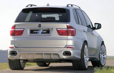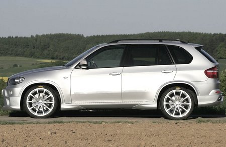 Немецкая тюнинг-компания Hartge известна своими безумными модификациями автомобилей BMW, и их последняя разработка не является исключением. На этот раз инженеры Hartge взялась за обновленный BMW X5, внеся изменения в экстерьер, интерьер и внутреннее устройство автомобиля, придав ему более спортивный, экстремальный и агрессивный вид. Мощность тюнингованного X5, получившего название Hartge Hunter, увеличили на 40 л.с. (29 кВ), что дало 3,0-литровому дизельному двигателю общую мощность равную 275 л.с. (202 кВ). Крутящий момент также увеличили – прибавка в 59 фунт/фут (80 Нм), до 443 фунт/фут (600 Нм), что позволяет разгонять внедорожник весом 2 тонны от 0 до 100 км/час всего за 7,4 сек, что на 1 сек быстрее базового X5. Максимальная скорость автомобиля составляет 232 км/час. В соответствии с такими характеристиками, Hartge Hunter также претерпел изменения в экстерьере. Автомобиль дополнили новыми аэродинамическими деталями, такими как передний спойлер, заднее крыло и новые боковые обвесы. Благодаря усовершенствованным рессорам посадка автомобиля стала ниже на 30 мм в отличие от стандартной модели, хотя за счет добавления новых кузовных элементов кажется, что Hunter посажен еще более глубоко. Небольшие дополнения, такие как серебристые углепластиковые козырьки боковых зеркал и специальные эмблемы, привлекают внимание к деталям. Массивные 22-дюймовые колеса, оснащенные потрясающими 285 мм покрышками Pirelli Scorpion Zeros на передних, и 335 мм – на задних колесах, успешно завершают экстерьер. Интерьер можно модернизировать под каждого конкретного заказчика, вплоть до установки спидометра, пронумерованного до 300 км/час, что с учетом максимальной скорости Hunter несет исключительно косметический характер. Завершают интерьер кожаный трехспицевой руль, приборная панель, эксклюзивная рукоятка рычага переключения передач и четыре двери со вставками из углеволокна, а также черные велюровые коврики. Полностью заряженный Hunter на европейском рынке будет стоить 57 554 евро ($90 100) плюс налоги. Кстати, покупателям нет необходимости покупать весь тюнинг-кит – каждую его деталь можно приобрести в отдельности.