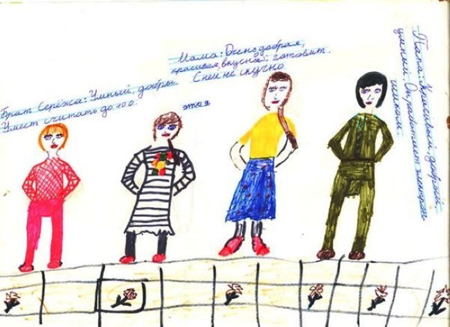 Во-первых, они все уже с детства красят губы, а во-вторых - половина из них носят мужские имена. Видимо, этой картиной художник борется с режимами стран, в которых «такие» семьи запрещены, несмотря на то, что, судя по описаниям, эти люди - цвет нации. Ведь женщина, которая работает электронщиком - достойна более чем уважения. Весь ужас ситуации выражается в том, что вся семья уже стоит у стенки с руками за спинами. Более того, кто-то уже положил цветы к их ногам. Сестра Серёжа умеет считать до 100 - видимо, именно на этой цифре грянут выстрелы. Но храбрые амазонки встречают смерть с улыбкой. Они знают, что их место займут другие, что их благородное дело будет продолжено и в будущем вся планета будет населена женщинами.